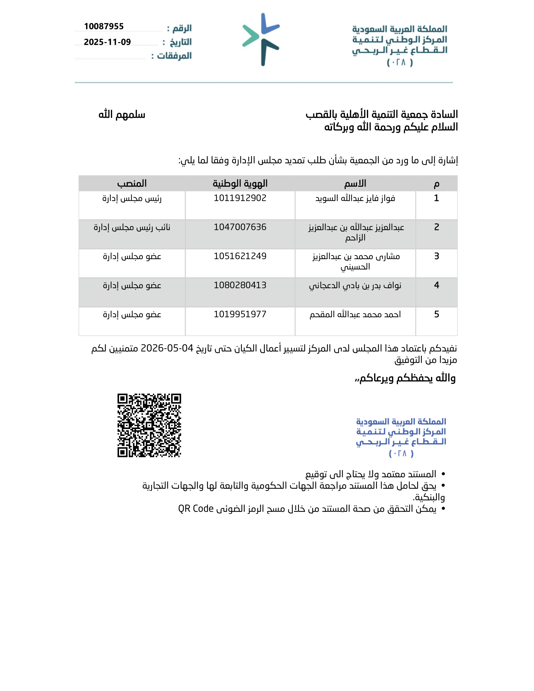 دورة المجلس الأولى والتي تنتهي في 04-05-2026م